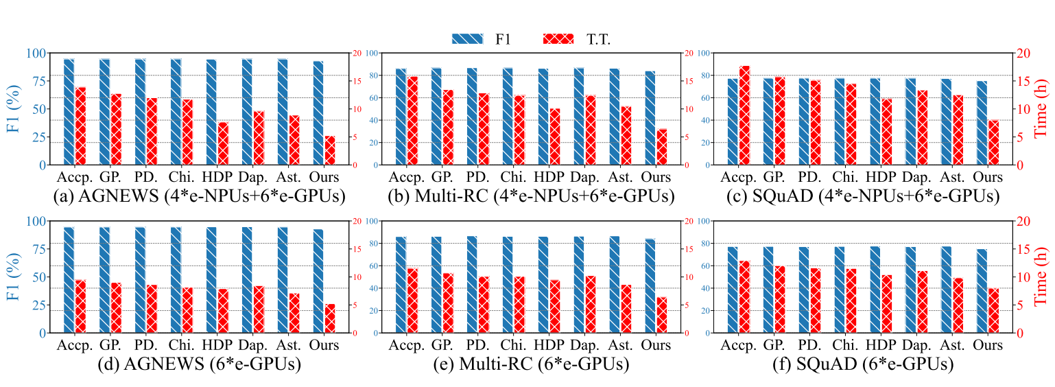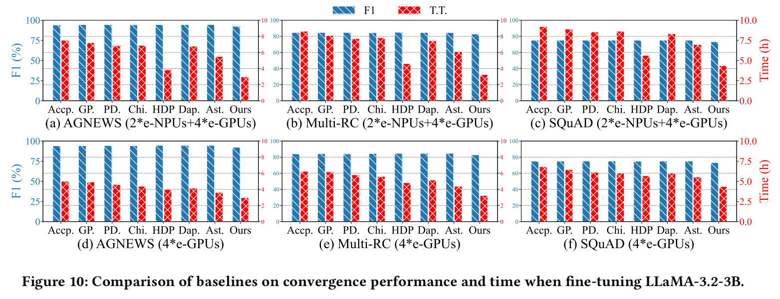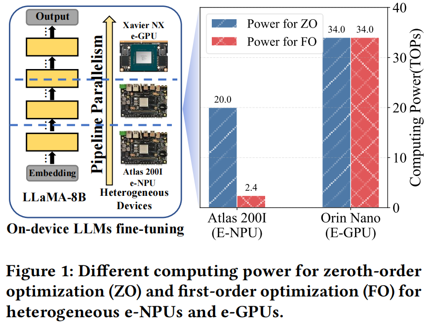 因此,如何将e-GPUs和e-NPUs统一到单一的流水线并行中,以实现高效的LLMs微调,是一个尚未充分探索且具有挑战性的问题。