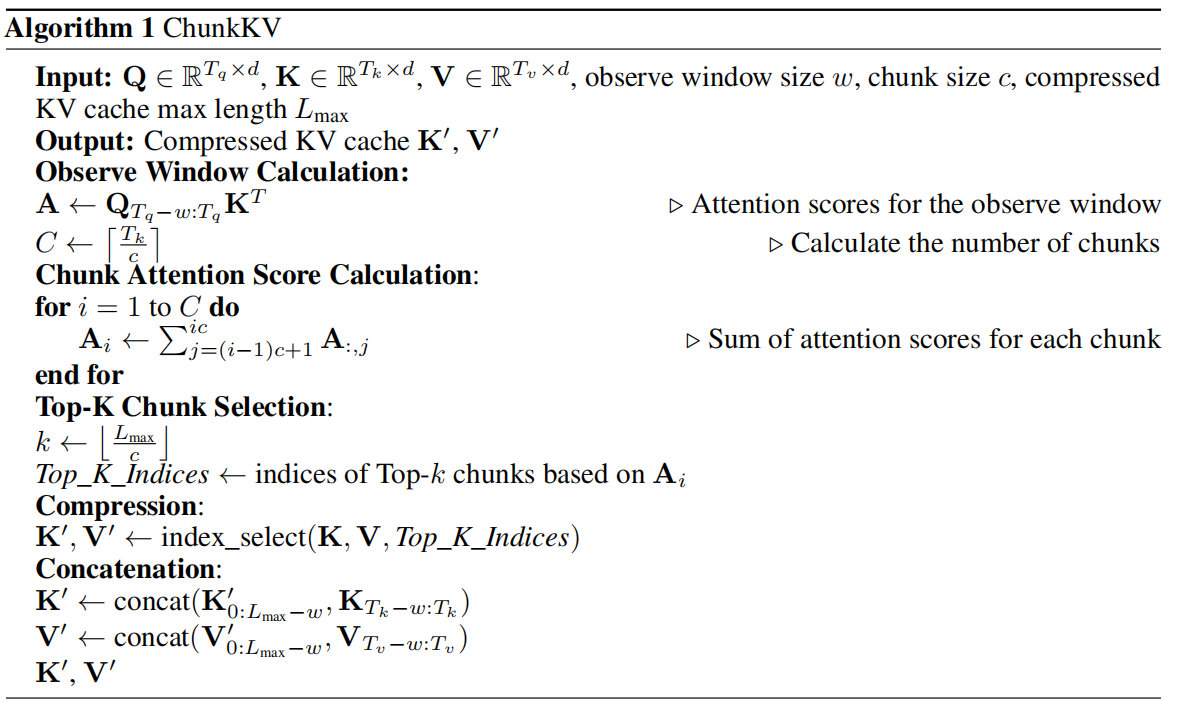 Algorithm 1 ChunkKV(论文伪码,整理说明)