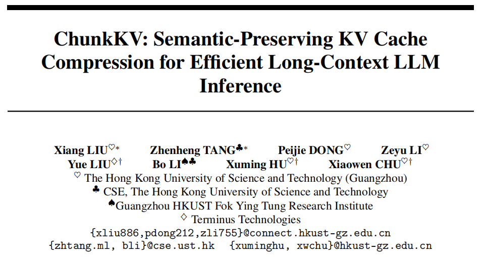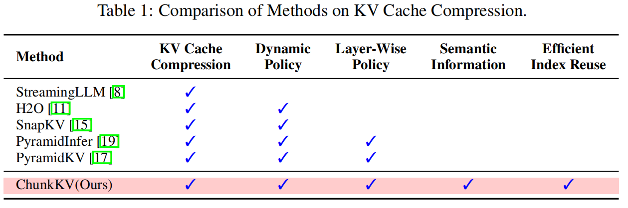 - ChunkKV 假定“删除部分 token 不会丢失极其关键的细节”,在法律/医疗等需要逐字级别保真的场景可能不合适(论文明确指出)。