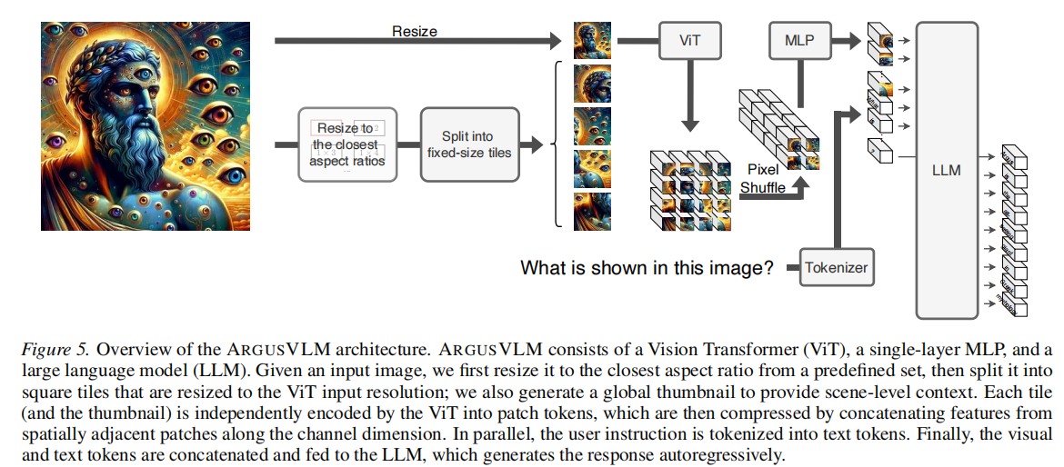 ARGUSVLM 采用标准的 Encoder-Projector-LLM 架构: