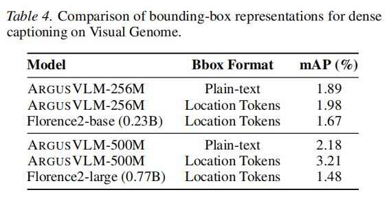 - ARGUSVLM 能够准确生成目标物体的坐标 Token。