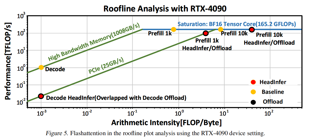 - 对于短上下文($S\le 1$k)或某些极短场景,offload 会把工作搬到 memory-bound,导致开销上升(turning point 在 ~2k)。因此 HEADINFER 在短上下文下可能不如标准推理快。