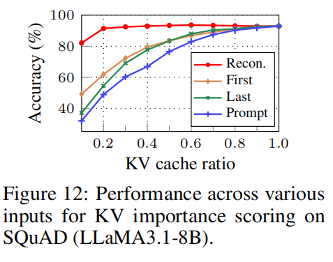 - [cite_start]结果:实验结果显示,只有 Recon(完整重建) 能够防止性能下降。仅使用 Prompt 或部分内容会导致模型无法准确识别关键 KV 对,从而在压缩后导致推理准确率大幅下跌 [cite: 487, 509]。