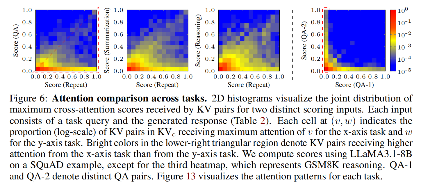 - 同一 context,在 QA、Summarization、Reasoning 三个任务中重要 token 完全不同。