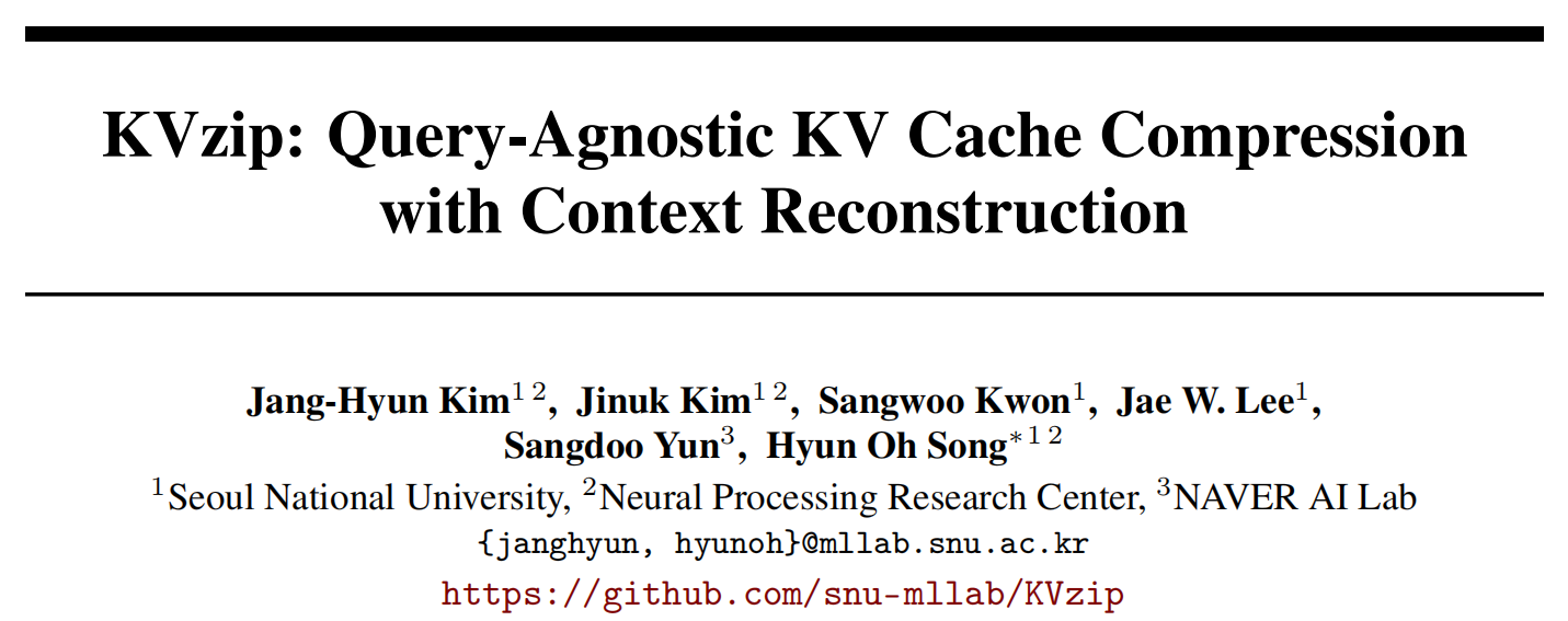 提出 KVzip:一种基于 context reconstruction 的 query-agnostic KV cache compression 方法 KVzip 利用“重复 prompt + 重构任务”诱导模型自动暴露其“最稳定的语义路径”。